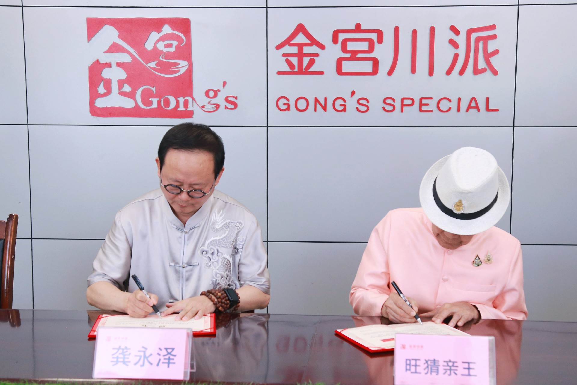 同時(shí),會(huì)上簽署了聘書(shū)和榮譽(yù)證書(shū)。龔永澤董事長(zhǎng)被特聘為泰國(guó)旺猜親王的川派美食顧問(wèn),并被特授予中泰美食文化大使稱號(hào)。金宮品牌被授予"泰國(guó)親王調(diào)味品御用品牌",川派、百信品牌被授予"泰國(guó)親王指定調(diào)味品合作品牌",金宮川派集團(tuán)旗下多個(gè)品牌同時(shí)被授予泰國(guó)親王指定合作品牌;金宮川派集團(tuán)特聘請(qǐng)?zhí)﹪?guó)旺猜親王為公司文化品牌高級(jí)顧問(wèn)。