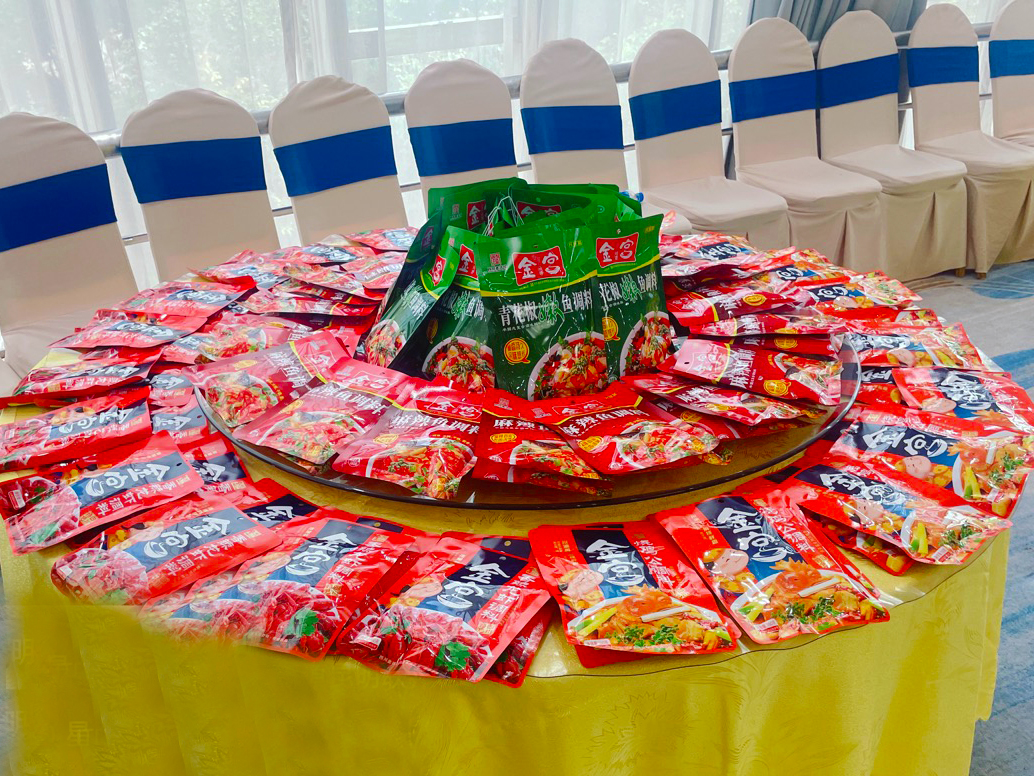 活動(dòng)現(xiàn)場(chǎng)設(shè)有產(chǎn)品展示與推介專區(qū),金宮熱銷產(chǎn)品“特級(jí)雞精454克”強(qiáng)勢(shì)登場(chǎng),香味濃郁、提鮮持久,深受在場(chǎng)客戶青睞。同時(shí),金宮還帶來了多款新品,包括“新香辣系列調(diào)味料”“濃縮牛油火鍋底料”“青花椒嫩魚底料”等,讓客戶在試吃中充分感受金宮在產(chǎn)品創(chuàng)新方面的持續(xù)突破與品質(zhì)堅(jiān)守。