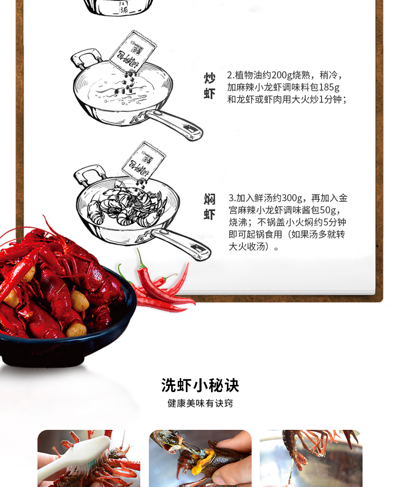 產品簡介:本調料是金宮川派公司川菜研發(fā)團隊收集川、渝江河上漁翁炒蝦的方法,精選郫縣豆瓣、辣椒、花椒、香辛料等精心煽炒爆香而成,烹調出來的小龍蝦外殼紅亮,蝦肉細嫩,蝦香濃郁,滋味又麻又辣又鮮,鮮嫩彈到爆。